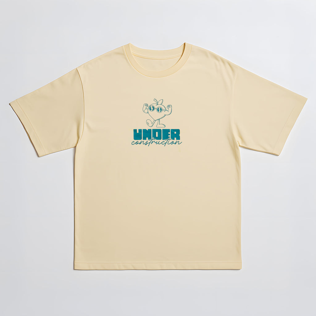 DESIGN: This tee is a statement in progress. Featuring a tongue-in-cheek ‘under construction’ print on a neutral base, it’s perfect for those who know the glow-up is ongoing. Midweight cotton offers comfort without compromise.